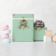 This Christmas wrapping paper features a lovely watercolor illustration of a pine tree, that has simple and elegant red decorations. It creates a modern, minimalist pattern in a light sage green background.