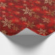 Holiday gift wrapping paper shown with a pretty red and gold snowflakes print.