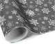 Holiday gift wrapping paper is shown with a festive winter snowflakes print.