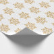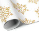 This Christmas wrapping paper is shown with a festive holiday gold snowflakes print.