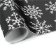 Wrapping paper shown in a festive Christmas snowflakes print. Matte paper shown