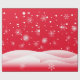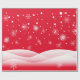 Christmas Wrapping Paper with Christmas Snow Mountain and White Snowflakes on Red Background. Happy Merry Christmas and New Year beautiful Wrapping Paper for Lovely Christmas gifts. XMAS Wrapping Paper decorated with Christmas magic symbols, winter snowflakes, holiday gifts elements pattern, snowman, christmas tree, christmas ball, snowflakes and more festive characters. Original trendy graphic design.