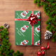 Merry Christmas wrapping paper with Santa Claus polar bear cartoon. Personalizable pattern with custom Xmas greeting or wishes and name. Funny white polarbear design with red Santa Claus hat and cute scarf. Custom background colour. Green and red personalised Holiday design.