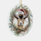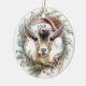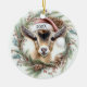 Adorable baby goat in a Santa hat graces this Christmas wreath of pine boughs and pinecones with red holly berries - dated or other short text - on the back is your own favorite photo with a gold goat hoofprint frame around the outside edge … perfect for all your holiday needs ©WhimsicalArtwork™ for GetYerGoat™
