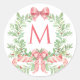 Christmas Wreath Candy Cane Bow | Monogram Classic Round Sticker