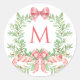 Christmas Wreath Candy Cane Bow | Monogram Classic Round Sticker
