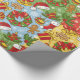 Wrap your holiday gifts with this Christmas wrapping paper featuring Christmas balls, gingerbread man, Christmas holly, Christmas wreath, Christmas gift, Christmas socks, Santa's hat, Christmas bells, Christmas balls, Christmas ornaments and Christmas candles on multicoloured background. Your presents will look extra jolly under the Christmas tree.