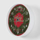 A Digitalbcon Images Design featuring a Christmas Red and Green colour theme with a variety of custom images, shapes, patterns, styles and fonts in this one-of-a-kind "Merry Christmas" Wreath Clock. This colourful and attractive design is sure to complement your Christmas Home Decor and makes a great Christmas Gift for family or friends alike.