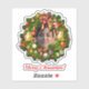 This festive sticker features a lovely Christmas wreath richly decorated with holly pine cones, luxurious ornaments, golden bells, silk ribbons, red bows and poinsettias. Customise it today by replacing the current photo with any picture uploaded from your device, edit the text and surprise your audience with your originality.