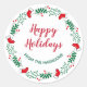Christmas Wreath Design Sticker Label with customisable text and background colour.