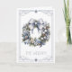 Christmas Wreath Holiday Card - Beautiful, wintery feel, seasonal Christmas card combining the reviving style of Art Deco and the magic of the tarot. The colours are pale golds, white, and assortment of silvers and grey. The image is a pretty floral wreath with the words 'the wreath' beneath. Inside is the message, ‘Wishing you a magical Christmas’ which can be customised for your own personal message.