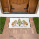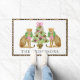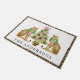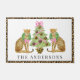 This Christmas gift bag has two Leopards wearing wreaths with a pink bow on either side of a Christmas Tree. The background is a white with a leopard print border.