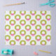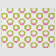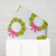 Deck the halls with this cheerful Christmas wreath pattern, featuring scalloped green wreaths adorned with bright pink bows and red ornaments, all set against a crisp white background. The symmetrical layout and bold colour palette give this design a modern twist on classic holiday charm.
