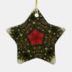 Christmas Wreath Red Green Gold with Red Star Ceramic Ornament