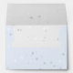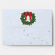 Decorated Christmas linen envelopes with a place for the return address on the front. Snowflakes in light blue cover the outside and a pretty green wreath with a red bow decorates the flap. The snowflake design carries to the inside.