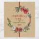 Colourful Christmas floral wreath, modern typography-Christmas Wine-, and beige cardboard paper texture background. Dark-red and green accent.