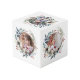 Christmas wreath with berries and flowers photo cube. This photo cube is adorned with a lovely Christmas wreath frame, which is embellished with branches, white flowers, red berries, and green leaves. The cube itself is designed to showcase five distinct photos on its sides within the wreath frame, allowing you to display cherished memories or festive moments. With its intricate details and festive elements, this photo cube is a perfect addition to your holiday decor.