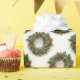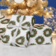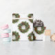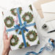 A roll of Christmas wrapping paper features an evergreen wreath with red berries - fun for holiday gift giving