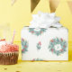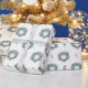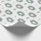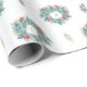 Elegant hand-illustrated wrapping paper featuring reindeer motifs and Christmas wreathes with berries, leaves, and eucalyptus foliage.