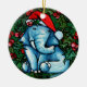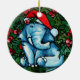 Christmas Yule Elephant with Holly Ceramic Ornament