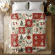 Colorful Christmas symbols patchwork quilt squares in a seamless pattern.