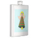 This awesome flask features a pretty Christmas Angel with blonde hair, blue eyes and a big smile. Her body is a festive green and red coloured bell with a yellow clapper at the bottom.
