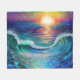 Invite the calm of the sea into your home with this surreal seascape piece, where a beautiful blend of blue hues and opal and jade colored waves meet the warmth of a dreamy sunset.