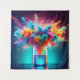 The image depicts a vibrant explosion of color erupting from a laboratory beaker. Clouds of pink, orange, blue, and green ink billow upwards, capturing the energy of a chemical reaction frozen in time. The beaker, filled with a glowing blue liquid, sits on a reflective surface, hinting at the transformative power contained within. The dark background and strategic lighting further emphasize the brilliance of the colors, creating a sense of wonder and excitement.