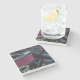 The coasters are gorgeous, a quality feel and heavy weight. They look like a precious archeological find. A rustic stone juxtaposed with a modern floral black and white print. I like the way the print goes slightly imperfect on the cut stone edges giving them a kind-of natural beauty.