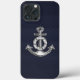 A modern nautical silver chrome like applique style on a navy blue carbon fibre decor for a custom phone case everyone on, or off the boat will enjoy.