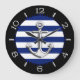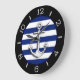 Chrome Anchor on Navy Blue Stripes Dial Large Clock