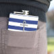 The flask itself is fine. It’s a cheap flask, obviously bought in bulk, however am prepared to overlook that. Given that it is a personalized item, I would have liked to have seen gift boxing instead of the generic packaging. Terrible printing, and/or quality. It’s a cheap, tacky vinyl. It is not cut straight and is also applied in a way that it is overhanging the bottom, causing the glue to catch on items and it will eventually roll and tear, damaging the wrap.