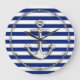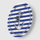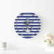 A silver chrome like design on a navy blue stripes decor. A modern nautical clock gift.