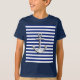 A modern nautical silver like applique style on a navy blue stripes pattern decor for a fine custom gift.