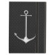 A nautical style silver chrome like anchor on a black textured decor. A modern nautical gift sure to make an impression on, or off the boat.