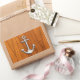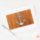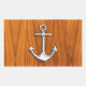 Chrome Anchor on Teak Veneer Style Rectangular Sticker
