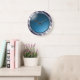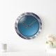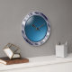 The look of a chrome ring on the outside with the roman numerals etched in. The centre looks like blue glass. An elegant clock that would compliment any decor. This is an image and not real chrome.