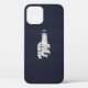 A modern nautical silver chrome like applique style on a navy blue carbon fiber decor for a custom phone case everyone on, or off the boat will enjoy.