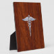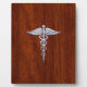 Chrome Like Caduceus Medical Symbol Mahogany Brown Plaque