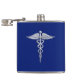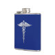 Chrome Like Caduceus Medical Symbol Navy Blue Deco Hip Flask