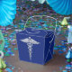 Chrome Like Caduceus Medical Symbol on Blue Decor Favour Box