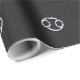 A silver chrome like Cancer zodiac symbol applique on a black snake skin style print background. A modern urban racy design for a great custom birthday gift idea.