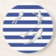 Chrome Like Diver and Sharks on Nautical Stripes Coaster