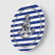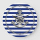 A silver chrome like lifesaver anchor design on a navy blue stripes decor. A modern nautical skin gift.