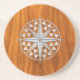 Chrome Like Nautical Compass Star on Teak Veneer Coaster