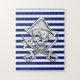 Chrome Like Pirate on Navy Stripes Jigsaw Puzzle