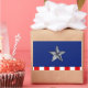 A chrome like large star design presented here on a patriotic style graphic print. Good for a patriotic occasion, sports event, or for a gift with an American flavour to it.