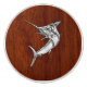 Chrome Marlin Fish on Mahogany Grain Print Ceramic Knob