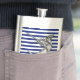 Chrome Marlin on Navy Stripes Print Hip Flask