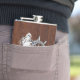 The flask itself is fine. It’s a cheap flask, obviously bought in bulk, however am prepared to overlook that. Given that it is a personalized item, I would have liked to have seen gift boxing instead of the generic packaging. Terrible printing, and/or quality. It’s a cheap, tacky vinyl. It is not cut straight and is also applied in a way that it is overhanging the bottom, causing the glue to catch on items and it will eventually roll and tear, damaging the wrap.
